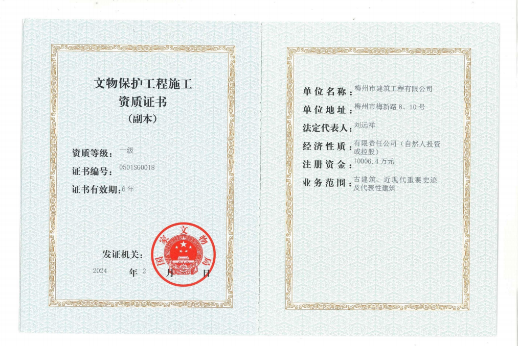 文物保護(hù)工程施工一級(jí)